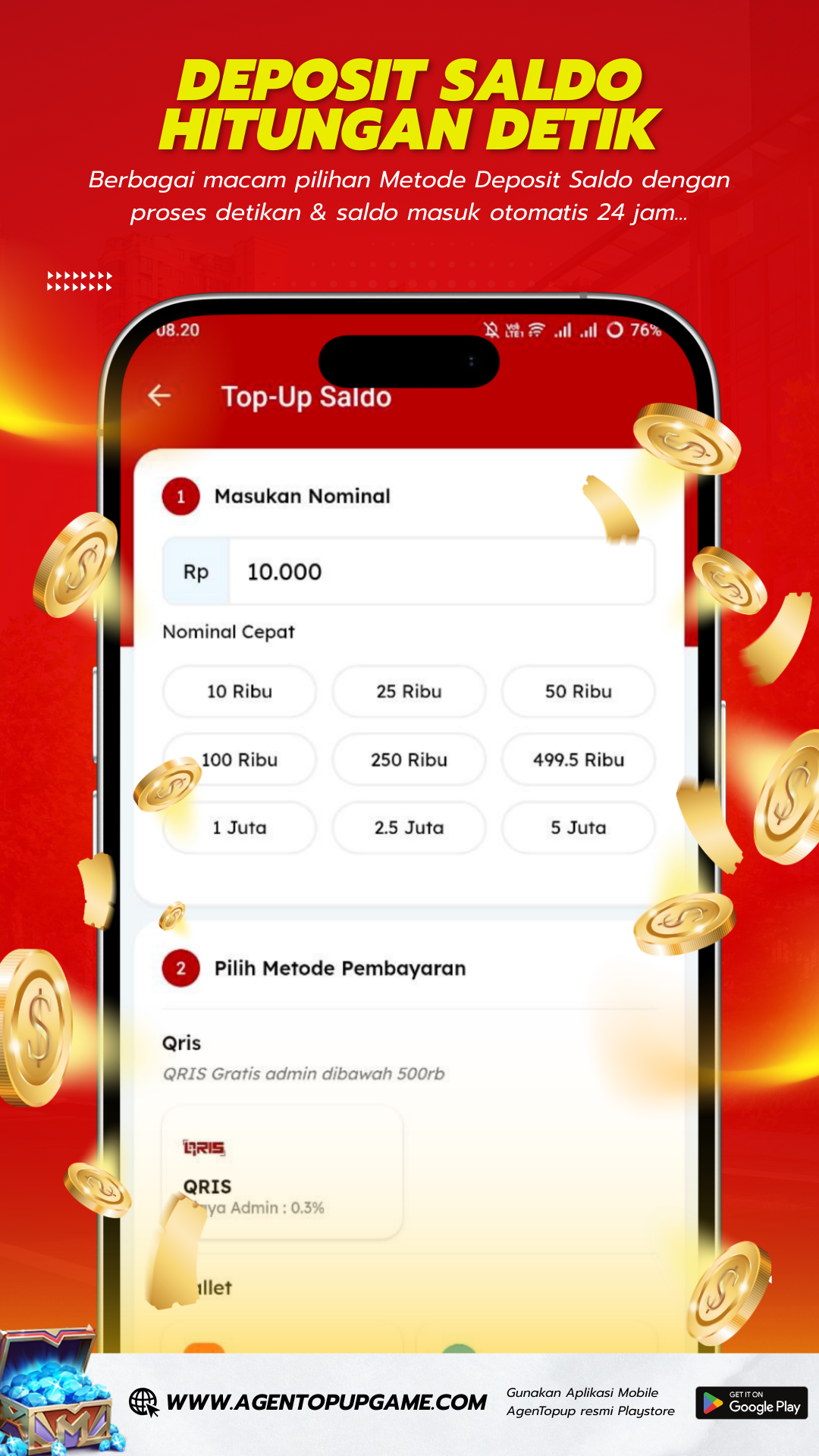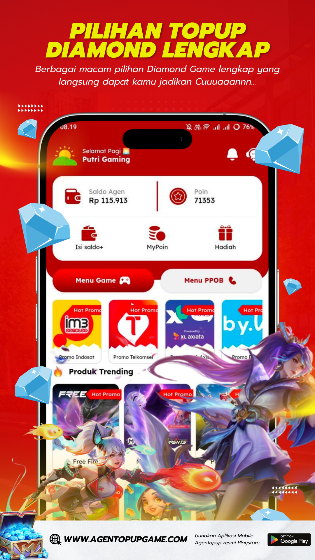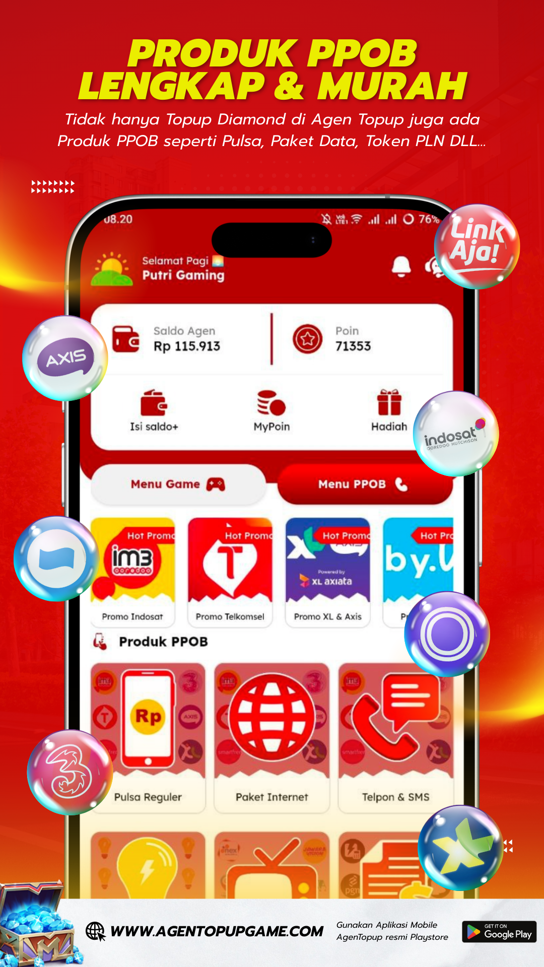 Menyediakan berbagai macam produk digital, TopUp Game, Voucher Game, Pulsa, Bayar Tagihan dll.